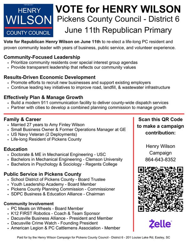 By providing your telephone number and email, you consent to receive calls and text messages from the Henry Wilson Campaign, including pre-recorded messages, and via automated methods. View the privacy policy below for more information.